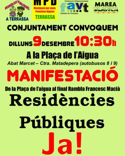 Roda de Premsa “Manifestació Residències Públiques” desembre 2, 2019 Maria Teresa No Comments Quan: desembre 4, 2019 @ 5:00 pm – 6:00 pm Llo: C.C. President Macià Read More